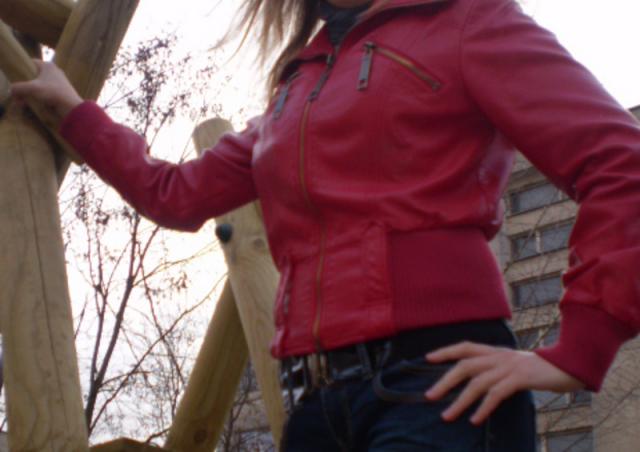 Dirbtinė oda. Ties dešiniąja kišene truputį patrūkinėjusi oda, bet nežymiai, matosi tik tą vietą ištempus.