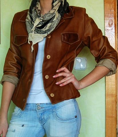 100% oda ir 100% vintage, rasta pas mociute ant auksto, visiskai nesuvaryta (nezinau kaip). Grazi sviesiai ruda spalva, rankoves trumpokos tai va todel ir atlenkiau, su petukais, geru pamusalu. tikrai nezinau kaip ji, ir kodel ji ten uzsistovejo..dydzio parasyta nera, bet as (nuotraukose) nesioju 36, tai matosi kad man siek tiek didoka, tai manau cia 38d. Tikrai ishskirtine ir tikrai vienetine striuke. ir taip pat made in Italy.