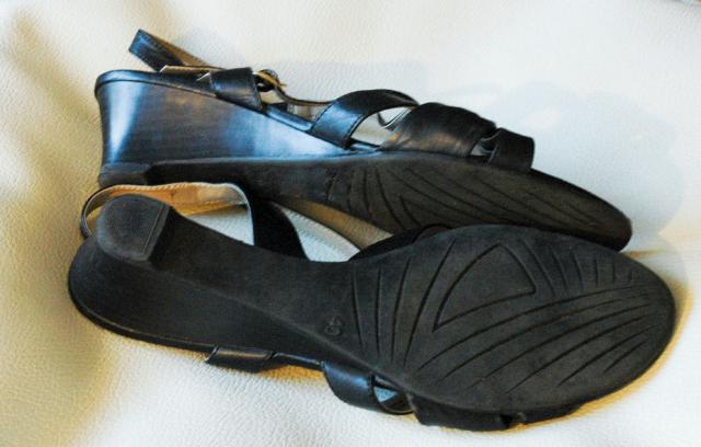 Odinės atviros juodos basutės ant neaukšto pakilimo. Man deja per didelės. Užsidėtos tik porą kartų. Labai geros būklės. Mielai mainau į vertingus man reikalingus daiktus .:)