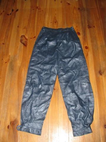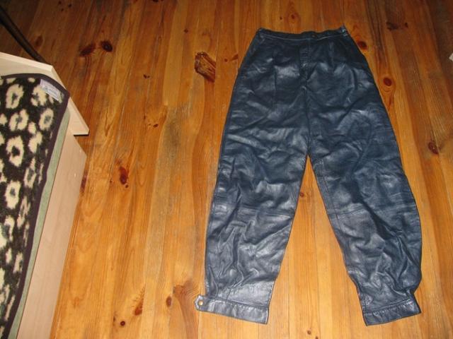 Ištikrųjų net nežinau ar vyriškos ar moteriškos ;D Tamsiai mėlynos odinės kelnės. Ir dydžio tiksliai nežinau, bet jei kam patiks galiu išmatuoti ;D
