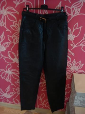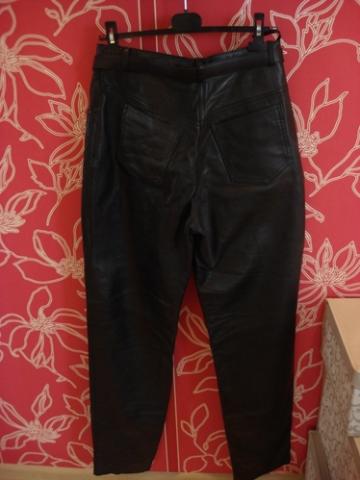 Moteriškos odinės kelnės aukštu liemeniu. M-L dydžio