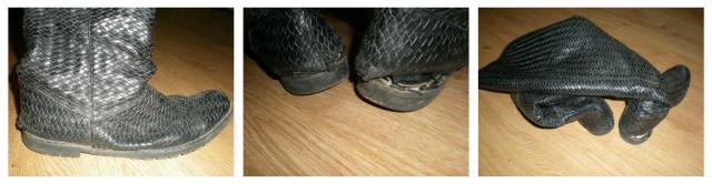 Labai ilgi, gražūs, odiniai batai. Pirkti Turkijoje, nešioti. Oda turi gražius ir įdomius raštus. Kadangi jie yra labai nunešioti, kaina labai sumažinau. Pirkai už 270Lt. Gal but tai pataisoma, o gal but kam nors reikes batų odai panaudoti.