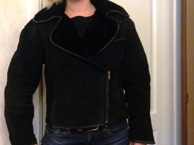 Dublionka, stilingi, nesioti, sagute susegimo nebetvirta reiketu pritvirtinti. viršus - oda, pamušalas - akrylas spalva - juoda pečiai - 53 cm kailinių ilgis - 55 cm pirkta ne Lietuvoj Siunciu pastu i visus miestus.