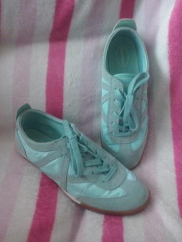 Odiniai nauji mėtinio žydrumo sportbatukai, spalva mėtinė/žydra, kur oda tokie tamsūs žydri. Realiai labai faina spalvytė :)