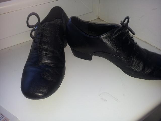 Parduodami berniukui šokių batai, labai buvo prižiūrėti (deja berniukas nebenori šokti, dėl to tenka parduoti batukus), buvo mokėta 250 lt (kai dar buvo litai :)) Batukai odiniai, lengvučiai, padas taip pat odinis, labai patogūs. Rašo, kad 35 dydis, bet tikrasis 37. kaina 30 €.