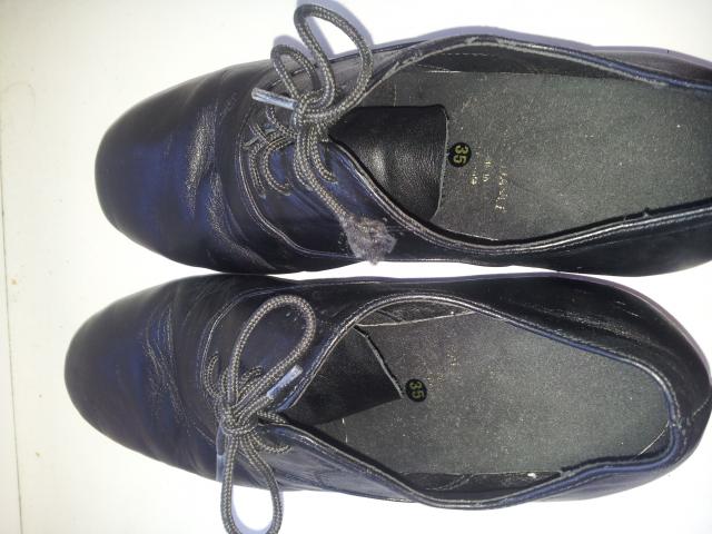 Parduodami berniukui šokių batai, labai buvo prižiūrėti (deja berniukas nebenori šokti, dėl to tenka parduoti batukus), buvo mokėta 250 lt (kai dar buvo litai :)) Batukai odiniai, lengvučiai, padas taip pat odinis, labai patogūs. Rašo, kad 35 dydis, bet tikrasis 37. kaina 30 €.