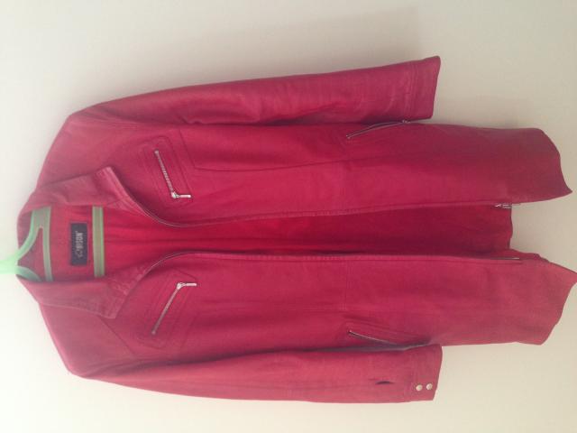 Puikios būklės natūralios odos raudonas puspaltukas iki kelių.
