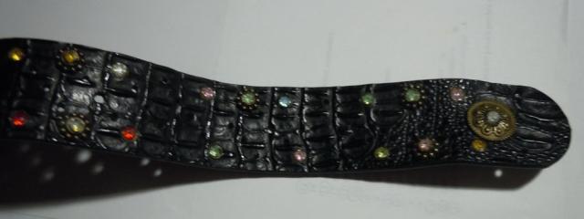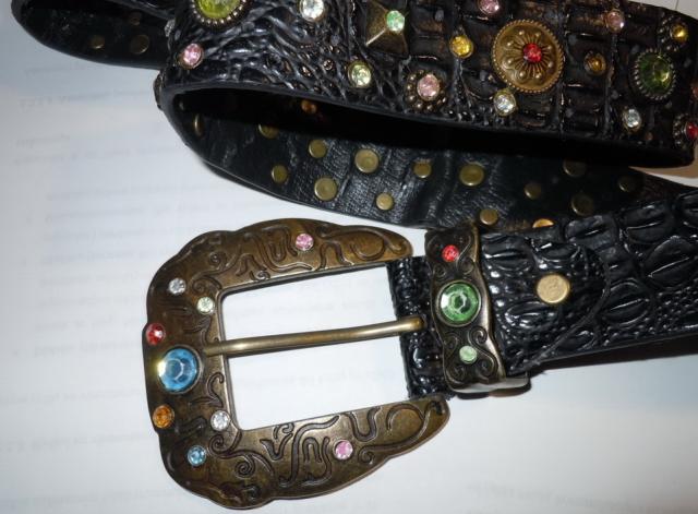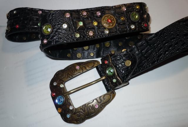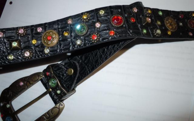 Odinis, kaustytas spalvotais stikliukais dirzas. Ne naujas. Stikliukai yra visi. Dirzo ilgis su sagtimi - 116 cm, sagtis - 8.5 * 8.5 cm