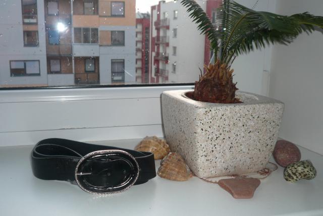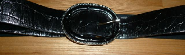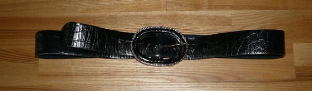 Juodas odinis dirziukas klubams blizgia sagtele. Defektas - pasitrynusi odyte aplink sagti. Taip pat galiu padovanoti ka nors perkanciai :)