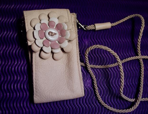 mobilaus telefono įdėkliukas, meninkės rankų darbo, odinis :} galima pasikabinti ir ant kaklo, o jei nenorit - galima nusiimti tą šniurelį :}