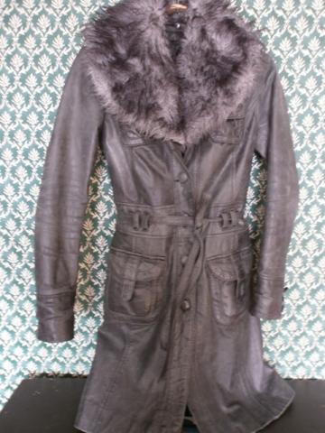 Odinis Vero Moda paltukas su atsisegančia dirbtinio kailio apykakle ir diržu. Tamsiai pilkos spalvos.