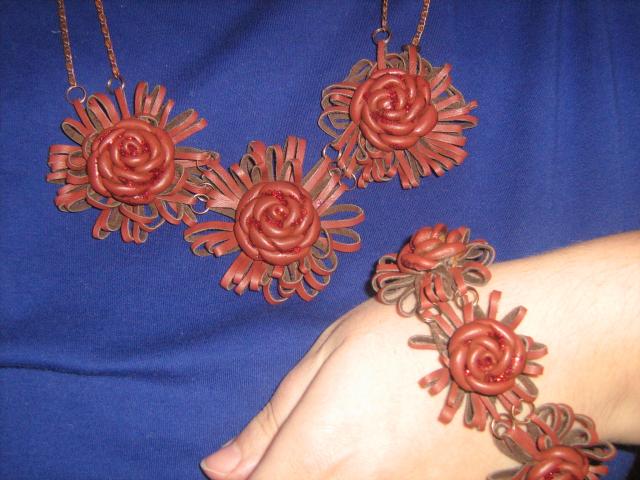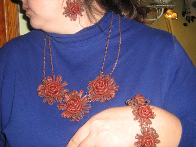 odinis ranku darbo rinkinukas auskarai,apyranke,verinys.su raudonu blizgesiu