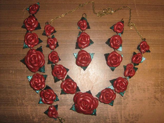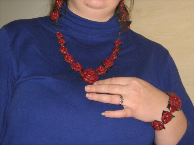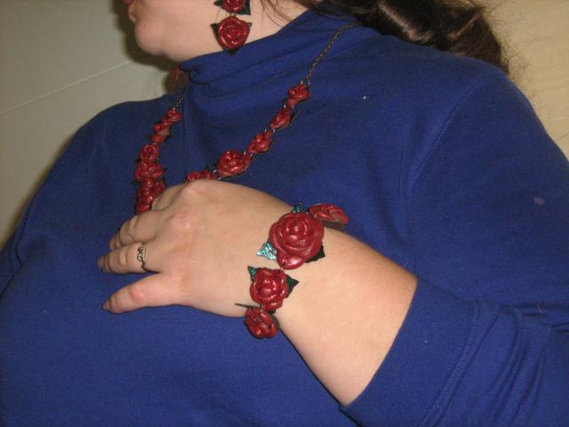odinis ranku darbo rinkinukas auskarai,apyranke,verinys,rinkinukas su raudonu ir zaliu blizgesiu