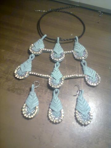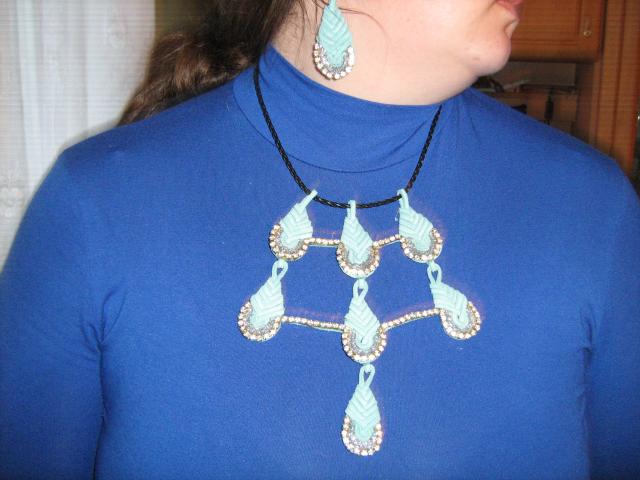 odinis rinkinukas ranku darbo,zydros turkio spalvos,vasariskas blizgus tiks prie visokiu drabuziu