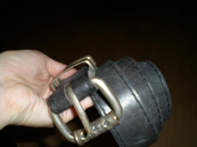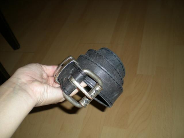 Ilgis su sagtimi 99cm, be sagties 95,5cm, plotis dirzo 4cm. Sudėtis: oda. Kaina: 8Lt.