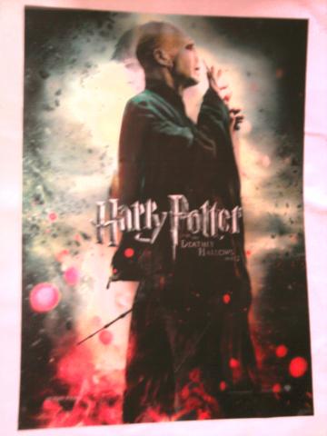 Oficialus Hario Poterio 7 filmo 2 dalies plakatas, padarytas iš plastiko, žiūrint iš vieno kampo matomas Haris, iš kito Voldemortas.