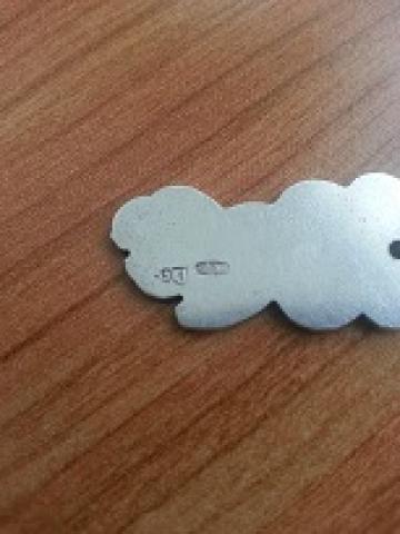 Tikro rusiško sidabro 916 ir ėmales 9T juvelyrinis gaminys išleistas 1980 Maskvos olimpiadai.