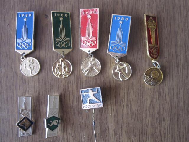 Olimpiniai ženkliukai ir paprasti ženkliukai.