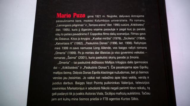 Na šios knygos pristatynėti nereikia. Jei moki skaityti tau reikia isigyti ją :) "Omerta" - tai paskutinė didžiosios Mafijos trilogijos dalis (pirmosios dvi - "Krikštatėvis" ir "Paskutinis Donas")