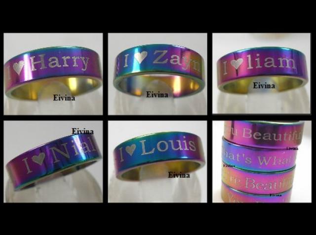 Visiškai nauji One Direction žiedai. :) 1 vnt - 5 Lt. Žiedų dydžiai 16 - 19. NEMAINAU. Yra su šiais užrašais: I ♥ 1 Direction I ♥ Zayn I ♥ Harry I ♥ Niall I ♥ Louis I ♥ Liam 1D ♥ 1D ♥ 1D ♥ 1D ♥ 1D You Don't Know You're Beautiful That's What Makes You Beautiful