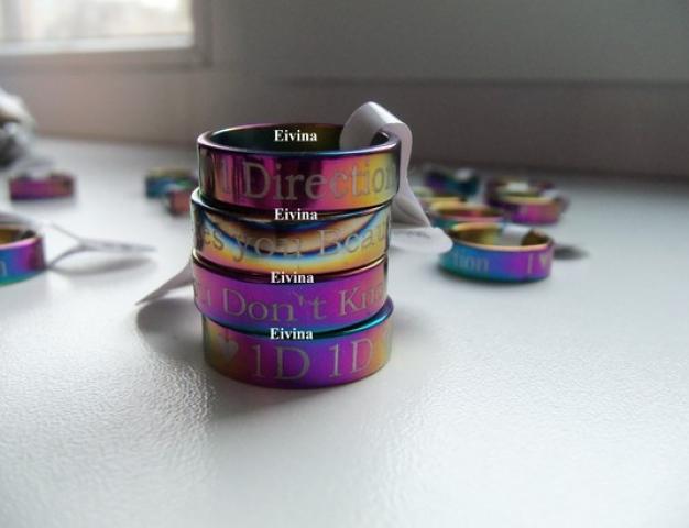 Visiškai nauji One Direction žiedai. :) 1 vnt - 5 Lt. Žiedų dydžiai 16 - 19. NEMAINAU. Yra su šiais užrašais: I ♥ 1 Direction I ♥ Zayn I ♥ Harry I ♥ Niall I ♥ Louis I ♥ Liam 1D ♥ 1D ♥ 1D ♥ 1D ♥ 1D You Don't Know You're Beautiful That's What Makes You Beautiful