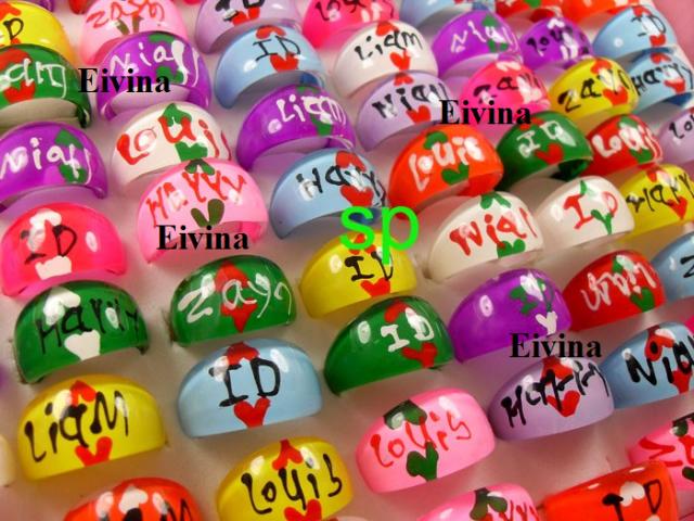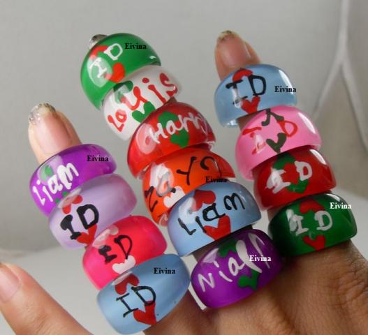 Visiškai nauji One Direction žiedai :) Su vardais - Harry, Zayn, Niall, Louis, Liam, ir su užrašu " 1D ". 1 vnt vertė - 4 Lt. :)