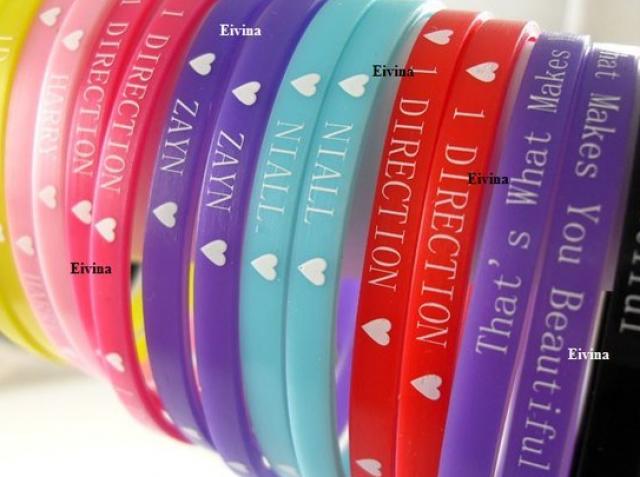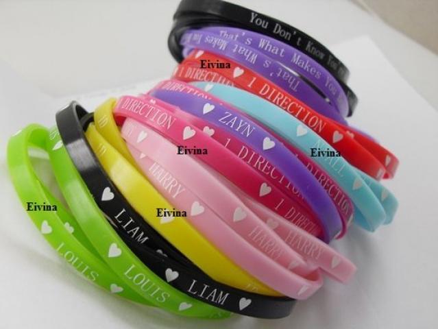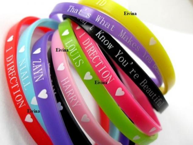 Visiškai naujos One Direction apyrankės. Šiuo metu likusios: ♥ 1D ♥ ( 2 vnt ), ♥ Liam ♥ , ♥ Zayn ♥. 1 vnt - 7 Lt. :) NEMAINAU.
