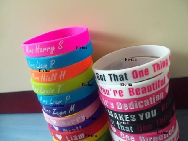 Visiškai naujos populiarios One Direction 1D apyrankės. Neklauskit ar turiu, šiuo metu turiu visas kurios yra nuotraukoj. :)) 1 vnt - 8Lt. NEMAINAU.