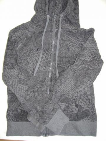 Pilkas, labai gražūs raštai, užsegamas, su kišenėm