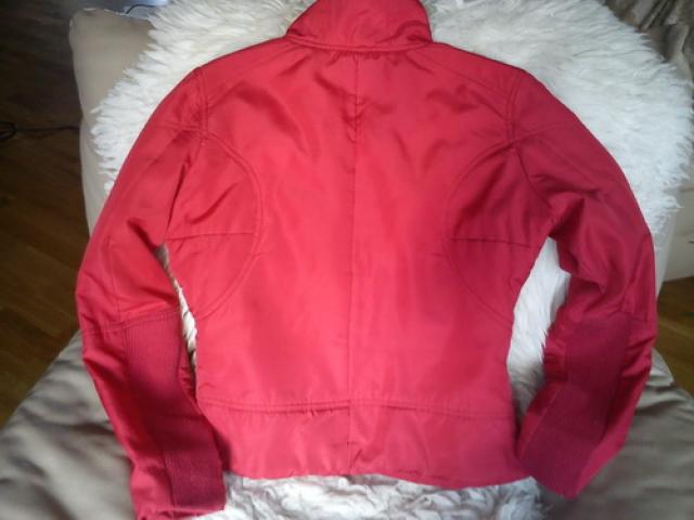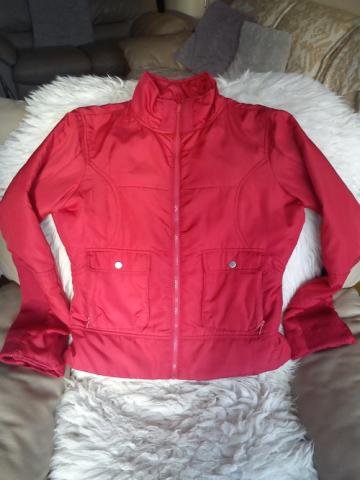 Graži raudonos spalvos Only striukė, dydis rašo L, bet aš nešioju M ir man tinka. Išmatavimai: Pečiai: 43cm Krūtinė: 53cm Rankovių ilgis nuo peties: 64cm Rankovių ilgis nuo pažasties: 52cm Visas ilgis nuo apykaklės per nugara: 56cm
