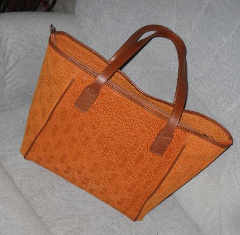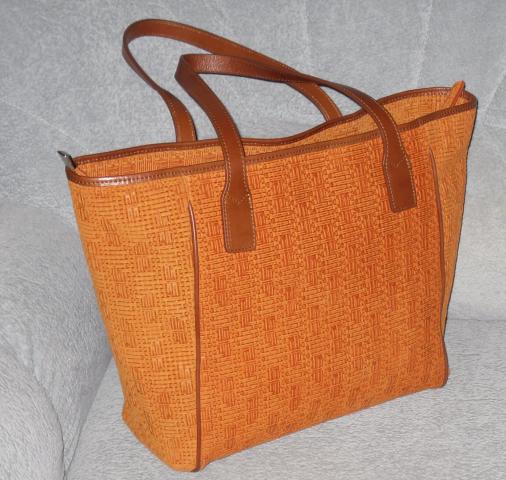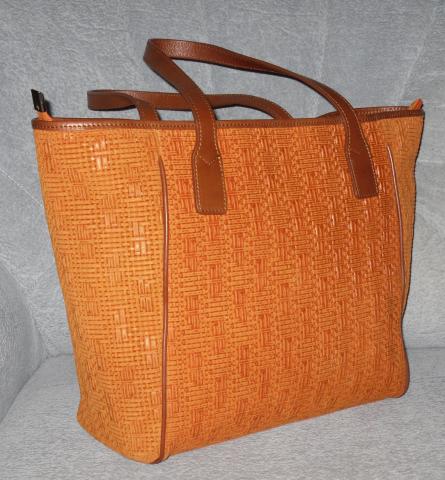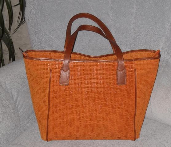 Vasariška žiauriai gražios spalvos rankinė, odinė. Dugno ilgis ~ 29,5cm, plotis ~ 10cm, aukstis ~ 30,5cm, aukstis su rankenom ~ 51,5cm.