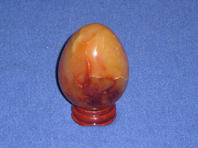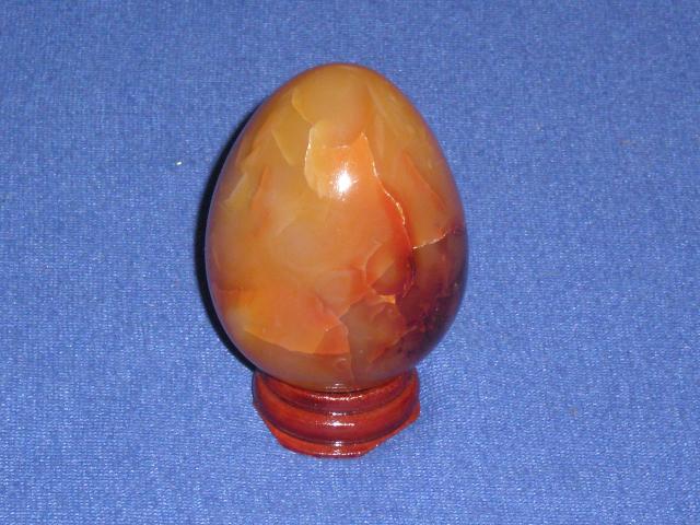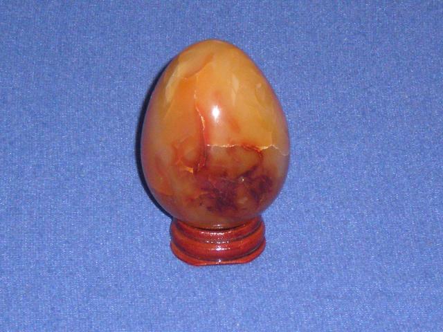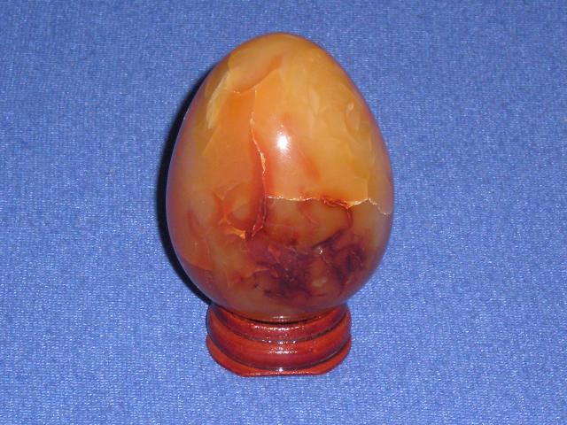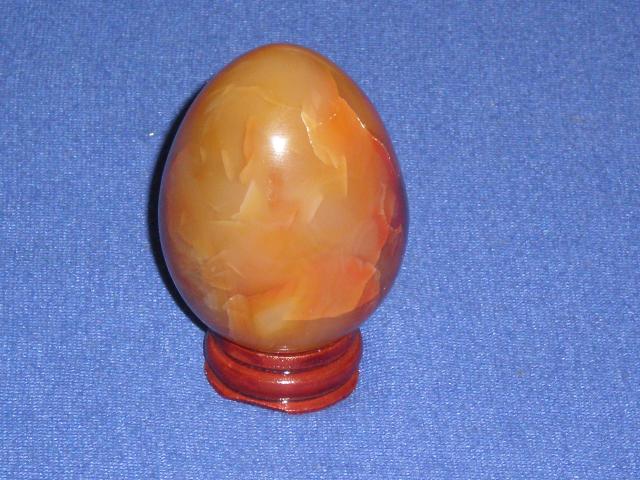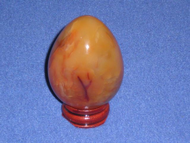 Matosi foto. Naturalaus kiausinio dydzio 6,5 cm ilgio ir 4,5 cm plocio. Tikriausiai pagamintas is pusbrangio akmens onikso, ypac retos spalvos.