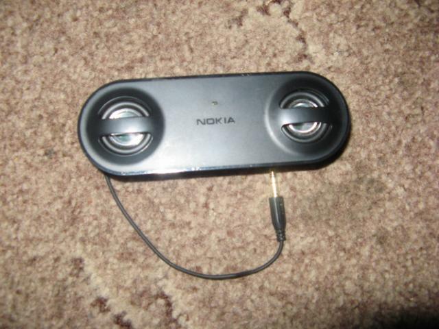 Nesiojamos nokia koloneles MD-8. Groja garsiai, kelis kartus naudotos, ir tereikia 3AAA dydzio bateriju. Antgalis 3.5mm laisvai limpa ir ant mp3-mp4.
