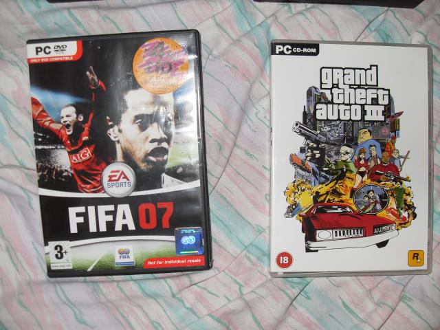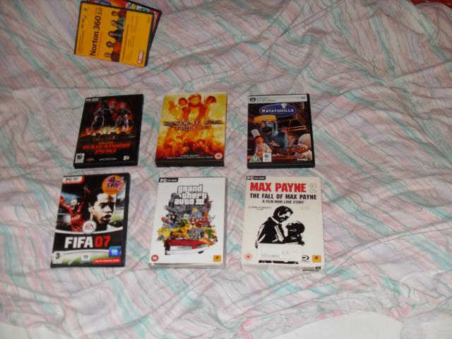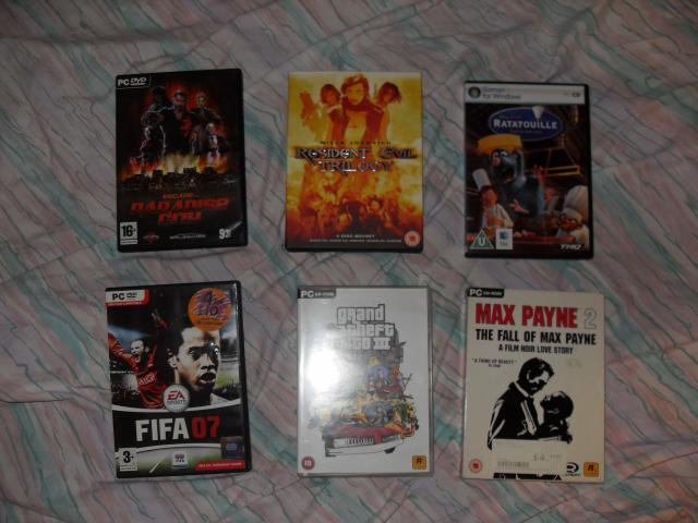 Pc žaidmai: 1) Paradise city 2) Resident evil trilogy (movie 3cd) 3) Ratatoulle 4) Fifa 2007 5) Grand theft auto3-Parduota 6) Max Payne 2- Parduota