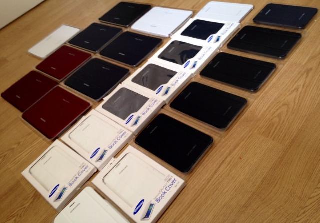 Parduodu orginalius dėklus ir pleveles: Samsung Galaxy Tab 3 Book Cover for 10.1" (9 dėklai) Samsung Galaxy Tab 3 Book Cover for 7.0" (14 dėklų) Plevelės: Tab 3 for 10.1" (1 pakuotė - 2 plevelės) Tab 3 for 8.0" (3 pakuotės - 6 plevelės) Tab 3 for 7.0" (1 pakuotė - 2 plevelės) Visos šios prekės parduotuvėse kainuotų apie 3000lt. Kai kurių dėklų dežučių nebėra, buvo išmestos nes pakuotės pažeistos, bet dėklai nei kiek nepaliesti, visi nauji. Peržiūrėkite ir kitas mano prekes - išparduodu prekes.