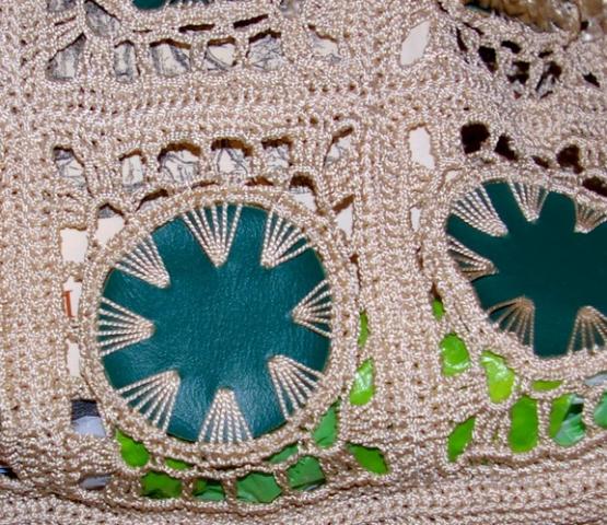 Labai įdomi, vienetinė nerto tipo su žaliais odos gabaliukais tašė ,nešiojama ant peties ir per petį