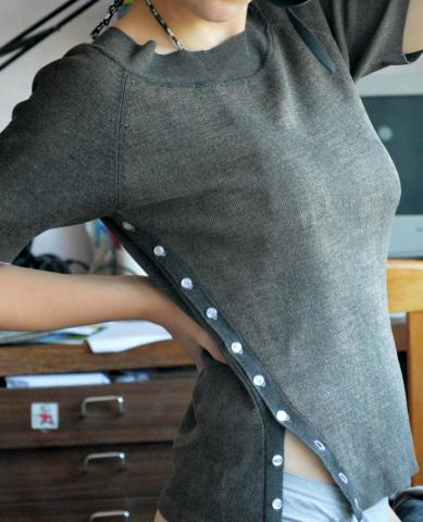 neįprasto pasiuvimo, beprotiškai graži palaidinukė su sagomis šone.