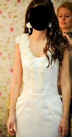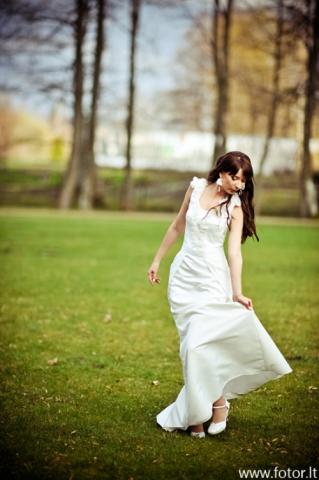Parduodu elegantišką, originalią ir išskirtinę vestuvinę suknelę. Siūta individualiai pagal VAMP mados namų 2012 m. kolekcijos suknelės pavyzdį. Dėvėta vieną kartą, išvalyta, stovis idealus. Suknelės dydis:36-38, spalva - pieno baltumo. Kaina - 1200 Lt, gali būti šiek tiek derinama(rimtai susidomėjusiai gali būti taikoma ženkli nuolaida). Taip pat parduodu specialiai prie šios suknelės sukurtus auskarus.