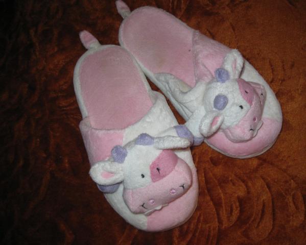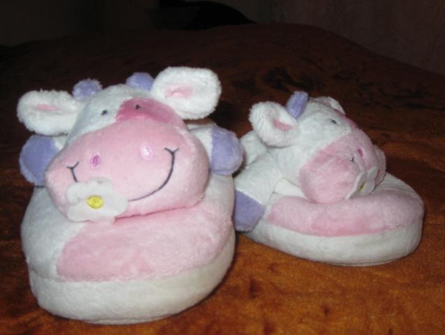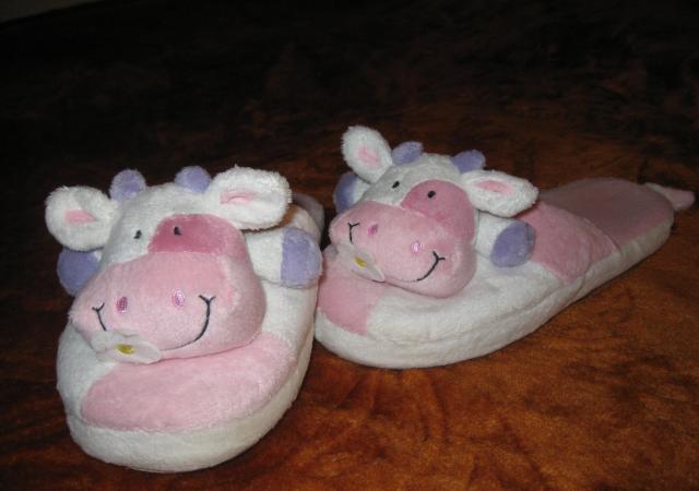Originalios šlepetės-karvytės, pirktos Airijoje. Labai šiltos ir minkštos, guminiu padu. Su jomis jausitės itin komfortiškai. Gaila, bet man jos didokos (buvau apsiavus tik vieną kartą). Nurodytas M (5/6)dydis, tad tiktų merginoms, dėvinčioms 38-39 dydį. NEMAINAU