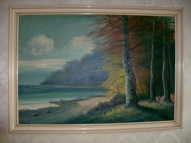 Puikios būklės paveikslas, tapytas ant drovės. Gražus peizažas. Paveikslas didelis 95 * 65 cm be rėmelių. Rėmeliai mediniai. Su dailininko parašu. Parduodamas su rėmeliais. Kaina derinama (proto ribose).