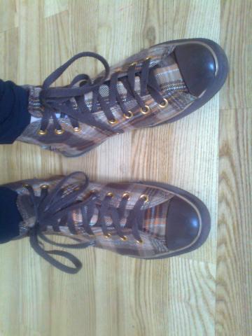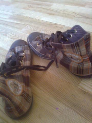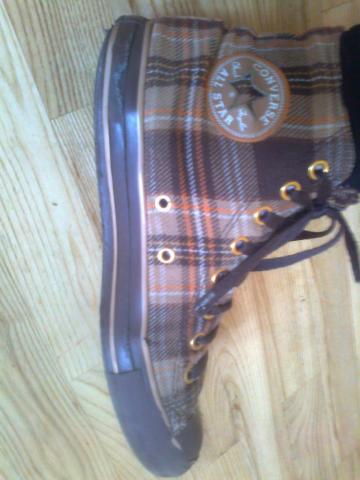 Labai patogūs konversai, dydis 7 (41, tačiau, tinka ir 40). Originalios spalvos, tokių Lietuvoje nebuvo, pirkti Ispanijoje. Yra vienas defektas - paplyšę padai iš vidaus (matoma 4 nuotraukoje), tačiau jei įsidėsite naujus vitpadžius, šio defekto nebeliks.
