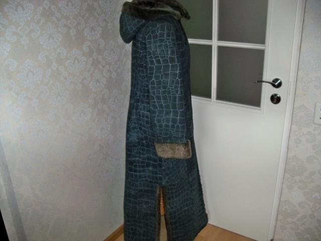 Ilgai mąsčiau ar parduoti. Nuostabūs, gražaus rašto kailiniai. Ilgis 136 cm, pečių plotis 46 cm, rankovių ilgis 63 cm (reguliuojasi), per krūtinę 108 cm, liemenį 99 cm. Labai gaila parduoti, deja, man per ilgi, nemėgstu tokių. Galima būtų iš jų pasidaryti trumpesnius kailinukus. Yra šone skeltas 46 cm ilgio. Būtent skeltą galima ir nukirpti. Būtų tada vidutinio ilgio kailinukai. Jeigu kas, pati nešiu pataisyti, patrumpinti. Kapišonas nusiima.