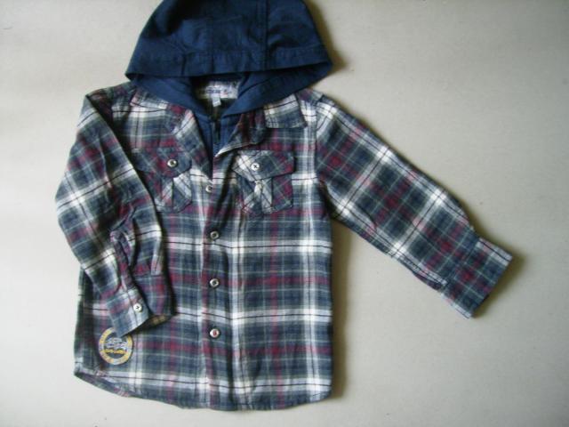 Įdomūs nauji marškiniai; atsegus, priekyje džemperiuko imitacija užsegama užtrauktuku ir su kapišonu ( 3-4 metukų berniukui) Dydis: 104 Prekinis ženklas: Rebel