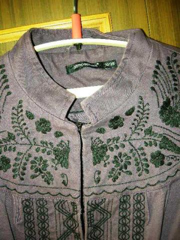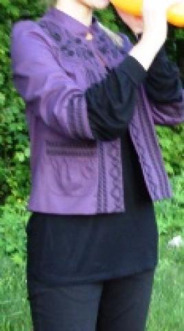 Pirktas UK, 38 dydis (Atmosphare). Siuvinetas juodu siulu. Ryksi, grazi violetine spalva. Labai gera bukle, defektu nera, nes mazai nesiotas.