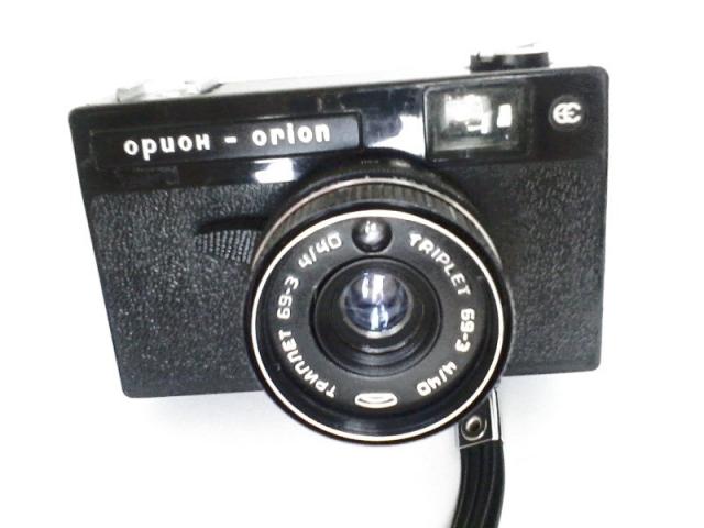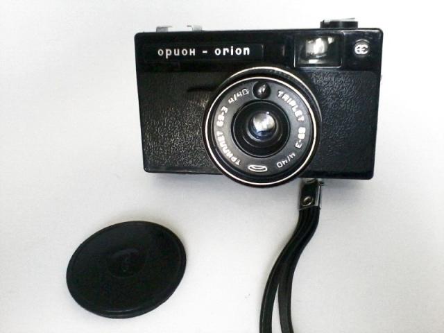 Senovinis fotoaparatas Orion. Neuzsifiksuoja uzpakalinis dangtelis.