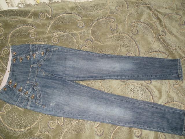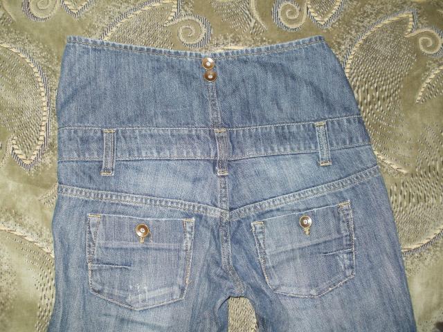 tamsiai melinos spalvytes dzinsai, paaukstintu liemeniu, vietomis padilintas dzinsas,veriasi dirziukas. raso EUR 34 dydis. spalvyte siektiek tamsesne realiai, nei foto.