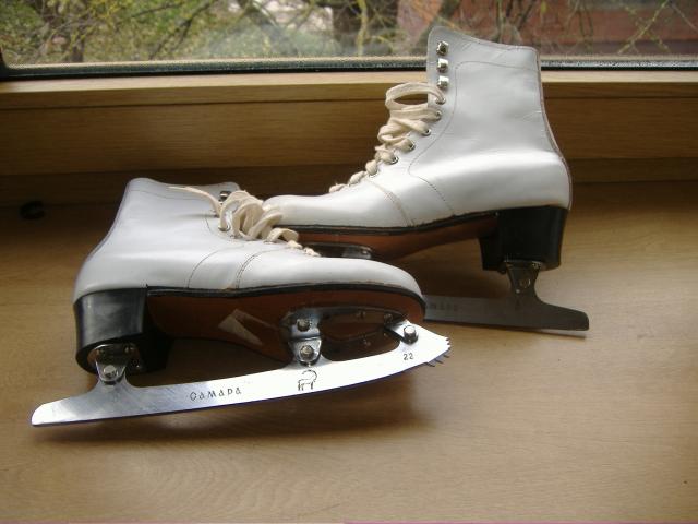 Labai mažai nešiotos. Tikrai ne daugiau 5 kart buvo čiaužyta. Paskui išaugom. Batukai 37 dydis. Geležtės kaip naujos, žvilga. Batukas vienoj vietoj ibrėžtas, bet tik vienas ir tik vienoj vietoj