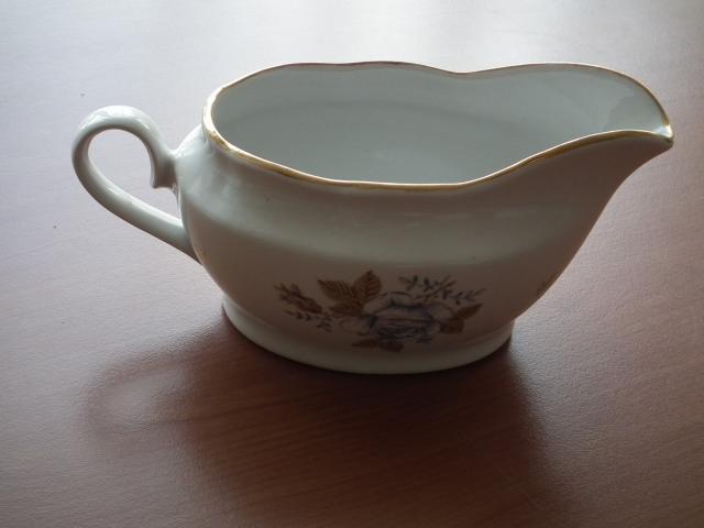 Tarybinių laikų paauksuotu krašteliu padažinė. Šonuose rožytės. Būklė labai gera.