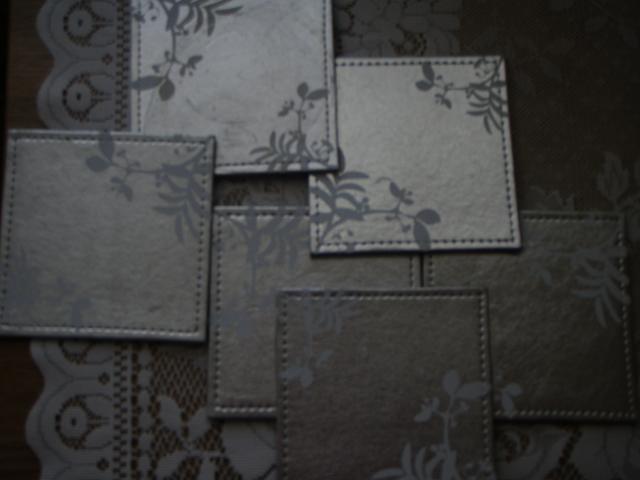 Sidabrinės spalvos ( 6 vnt.) mažai naudoti padėkliukai. Stori, kitoj pusėj aksominė medžiaga-todėl gerai prilaikytų puodelį ir nepaslys...:) P.S.: žvakidės neparduodu. Pateikiu pavyzdį, kaip atrodo ir kad galėtumėt įsivaizduot.