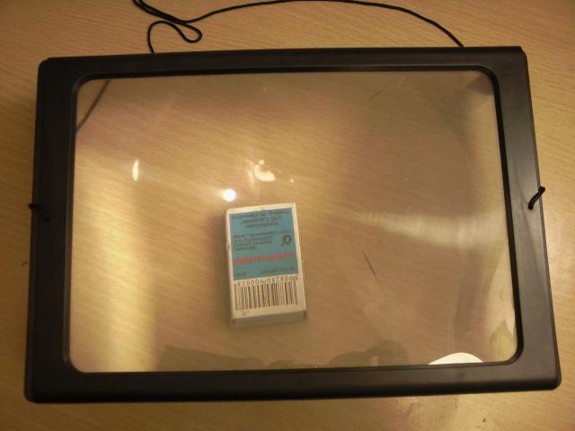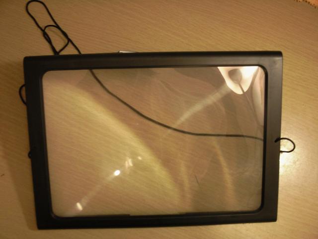 Plastikinis su atverciamomis kojelemis remelis su padidinamuoju stiklu (plastikinis),mazam tekstui skaityti ar dirbti kokius smulkius darbus, rankdarbiams labai tinka. Pirktas is katalogo SELEKT uz 30 lt. Geras stovis.